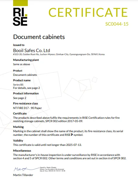 BOOIL SAFES, founded in 1971 in Korea, is a leading manufacturer of high-quality fire-resistant and anti-burglar safes, exporting to over 100 countries. They offer certified security solutions